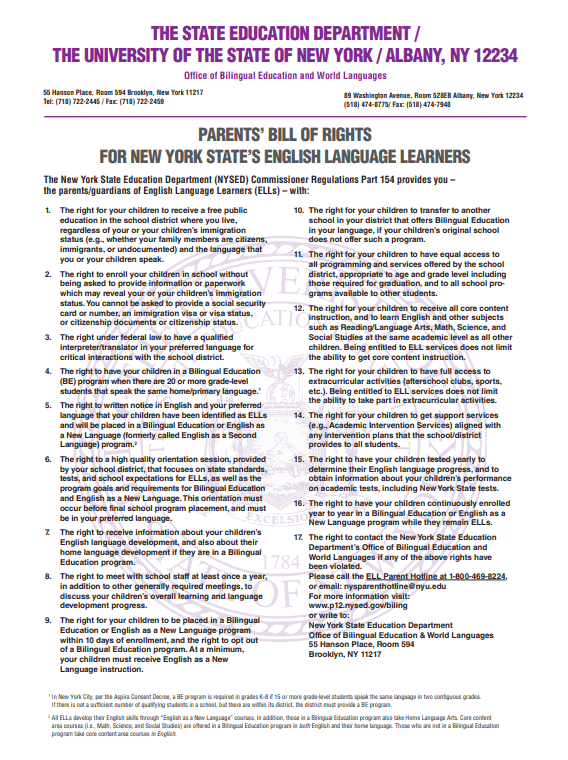 NYS ELL Parent Hotline Number: (800) 469-8224
